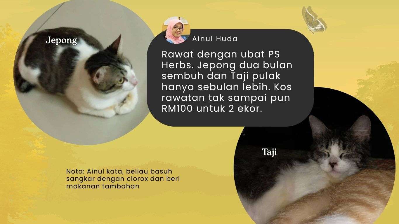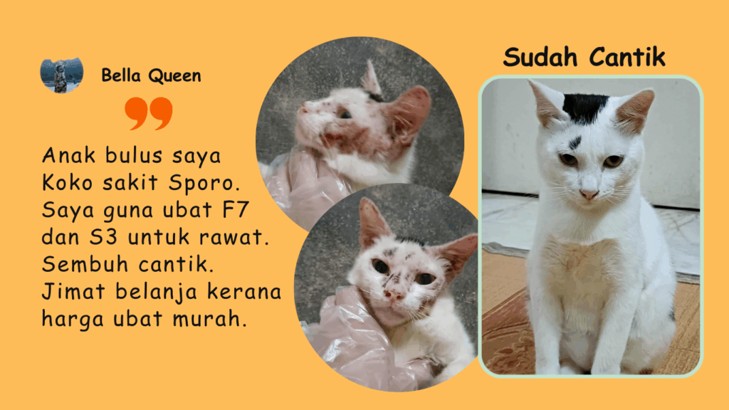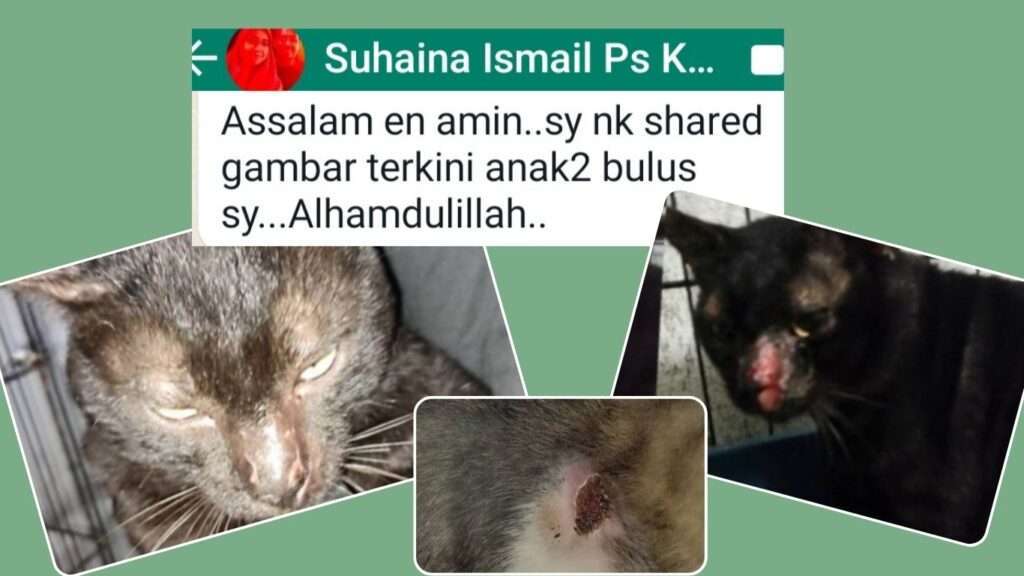 Beliau telah merekod progres rawatan dan memberi testimoni merawat kucing sporo beliau dari mula hingga sembuh. Klik untuk baca selanjutnya untuk maklumat lanjut.