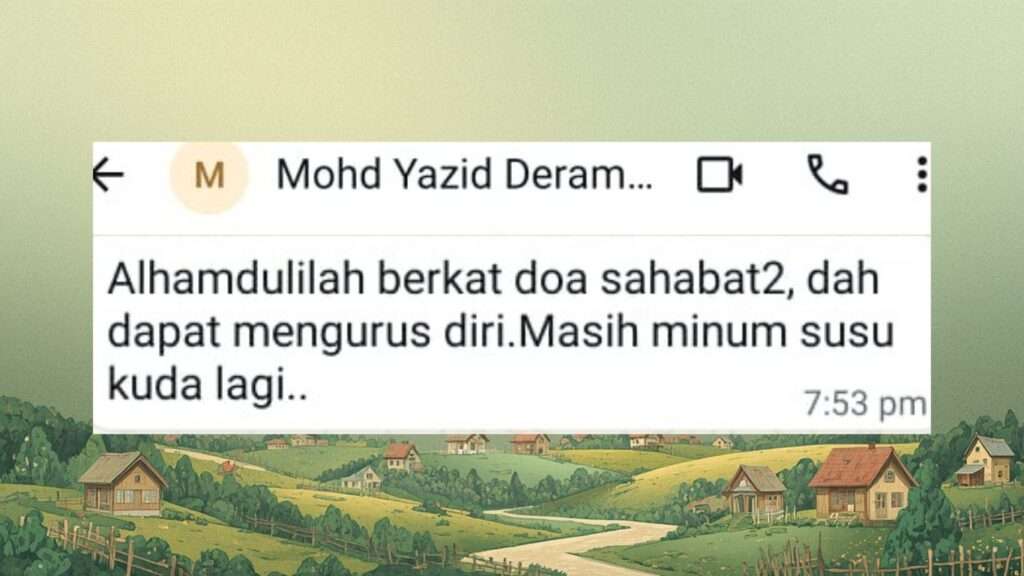 Apabila ditunjukkan keadaan saya, beliau mencadangkan satu amalan ikhtiar — minum susu kuda.